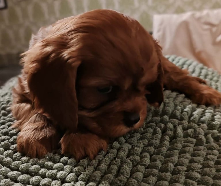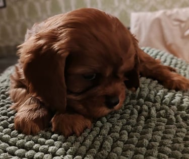 Vapaana kauniisti värittynyt tricolour ja blenheim värinen urospentu. Lisäksi ruby värinen narttupentu (kuva oikealla).